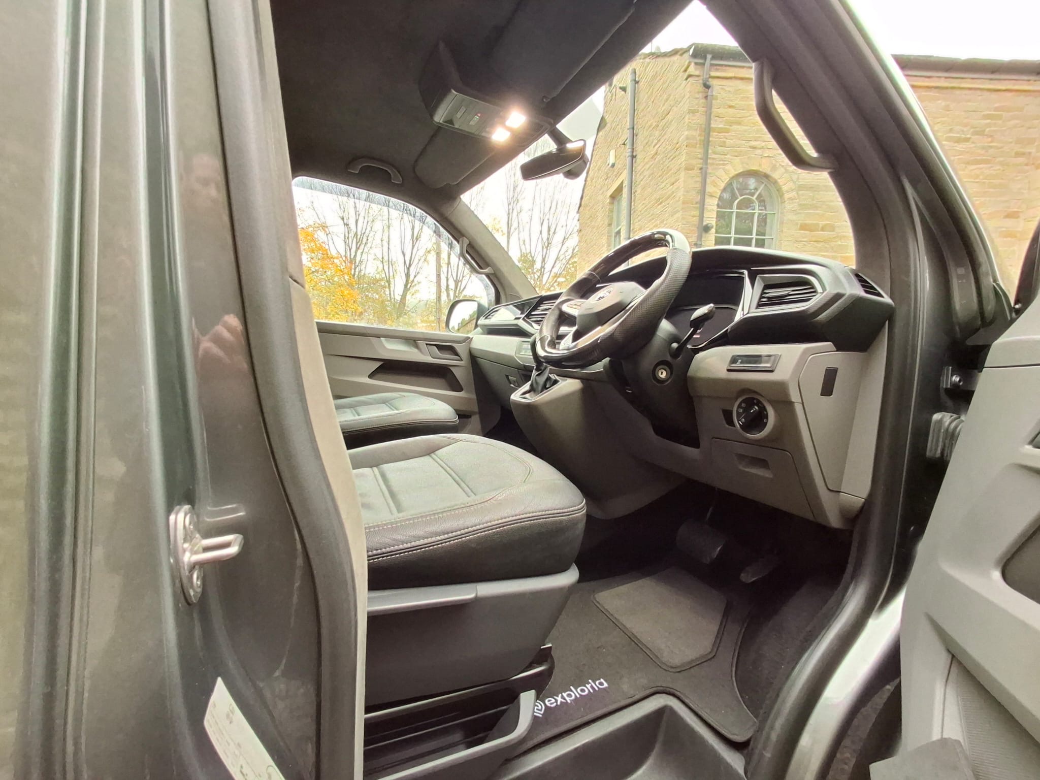 In stock at Exploria is this stylish VW Transporter T6.1 Factory Kombi with a Caravelle Conversion T32 LWB (2020) in Grey